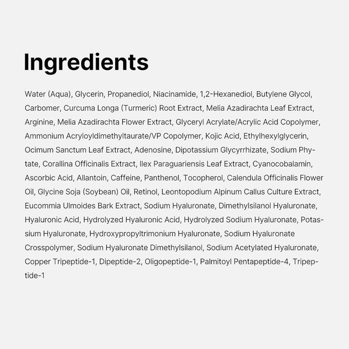 Кожикийн хүчил, Турмерик, С амин дэмийн хослол нь нүдний доорх жигд бус өнгийг сайжруулж, ядарсан мэт харагдах нүдийг сэргээж, илүү жигд, гэрэлтсэн төрхийг бий болгоно.