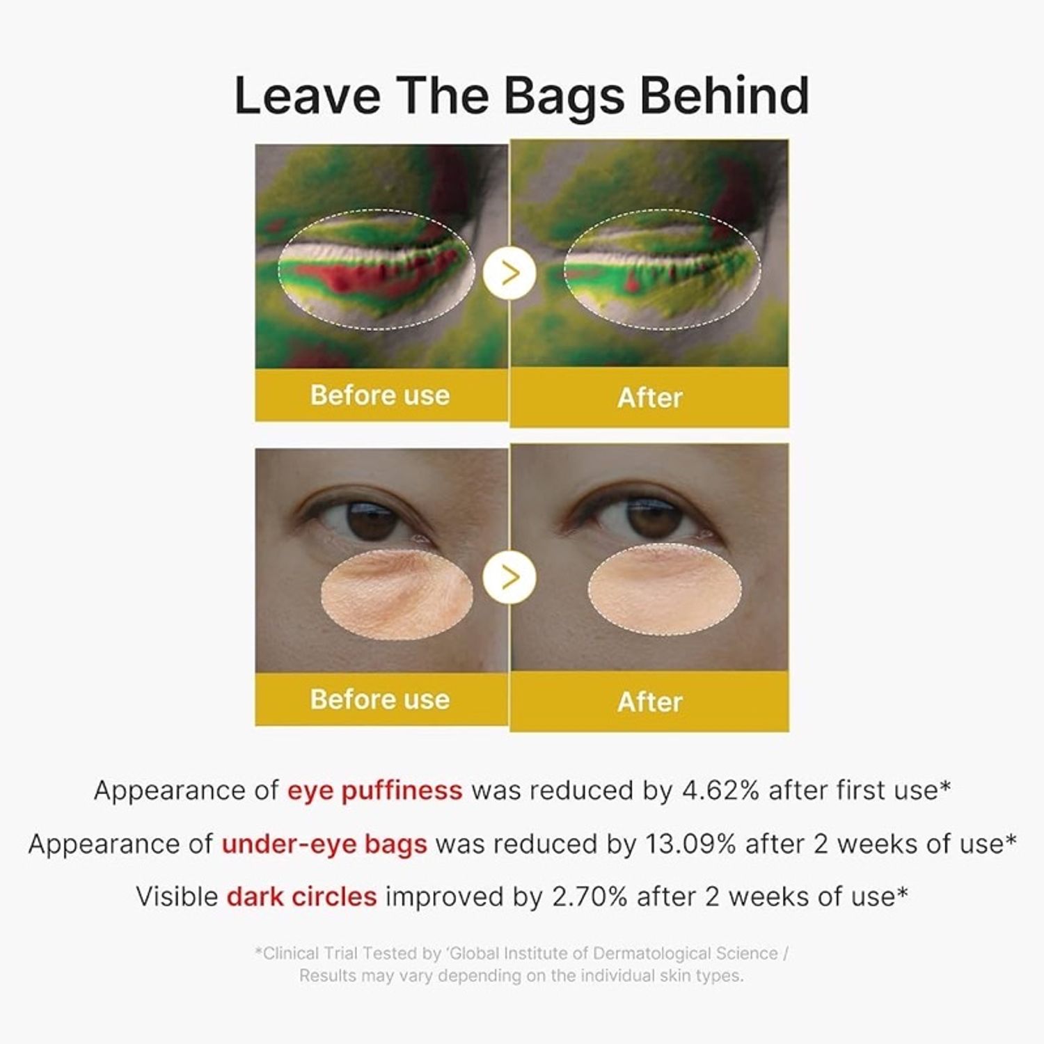 Кофеин, Ретинолын найрлага нь арьсыг чанга харагдуулахад дэмжлэг үзүүлж, хавангийн илрэлийг багасгана. Харин Гиалуроны хүчил, Пантенол нь удаан хугацааны чийгшил өгч, нүдний орчмын үрчлээ, хуурайшлыг зөөлрүүлнэ.