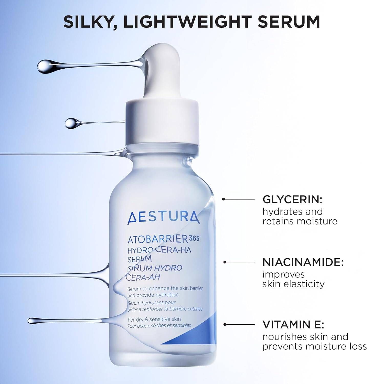 Керамид болон гиалуроны хүчил хослон эрчимтэй чийгшүүлж, арьсны хамгаалалтыг хамгаалснаар чийг хадгалах чадварыг сайжруулна.